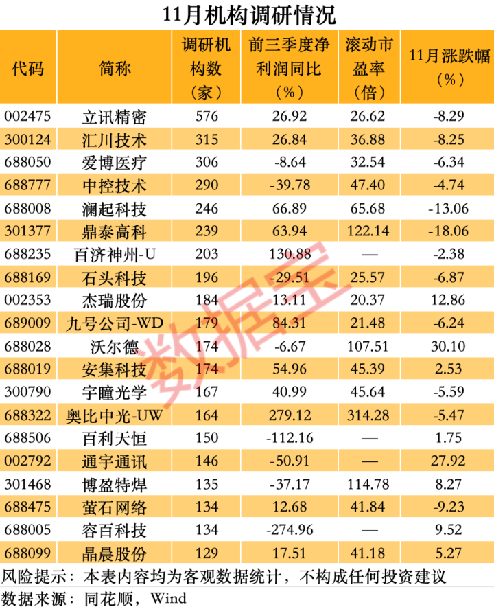 11月获得机构调研的个股有1500多只配资网上炒股配,立讯精密调研机构数最多。