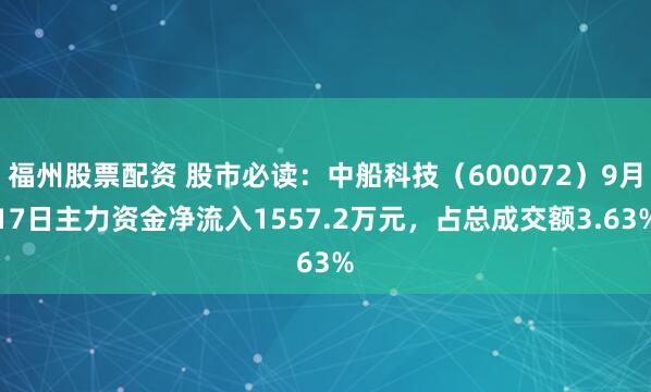 截至2025年9月17日收盘福州股票配资,中船科技(600072)报收于12.67元,上涨2.43%,换手率3.11%,成交量33.65万手,成交额4.29亿元 ...